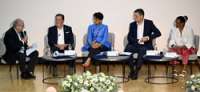 6. הפאנל, מימין לשמאל: נובה פריס, פרופ' פטריק קרמר, פרופ' קנטה אחמד, עו"ד ג'ף אברמס ופרופ' אמריטוס פרץ לביא
