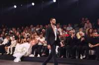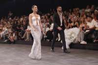 המעצבת ליאל ימין מציגה קולקציית כלות 2026. על הבמה לצד הדוגמניות 'חתנים פוטנציאליים' מלווים את הצועדות לצלילי האמן מארק אליהו