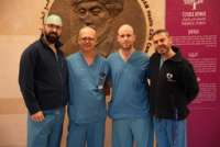 בתמונה (מימין לשמאל): פרופ' אסף זלצר, מנהל המחלקה לכירורגיה פלסטית ברמב"ם, ד"ר בנג'מין צרפתי האורח הישראלי-צרפתי, ד"ר אביעד הופמן, מנהל המכון לבריאות השד ברמב"ם, וד"ר פארס סלאמה, רופא בכיר במערך לכירורגיה כללית ברמב"ם. צילום: דוברות רמב'ם.