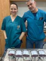 ד'ר דנה שוסטרמן וטרינרית אחרית על הכלביה העירונית בחיפה ודר ערן סיטון וטרינר אחראי בנק הדם בבית דגן. צילום: דוברות עיריית חיפה |