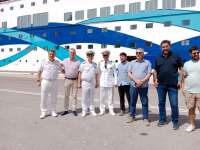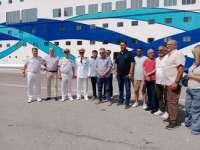 | ראש העיר רודוס מושל המחוז ונציגי הארגונים עם קפטן האוניה מנהל המלון ומנהל השיווק של 'מנו ספנות'. צילום: ולרי |