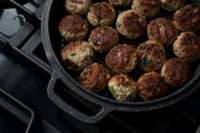 4. מוציאים את הקציצות מן המחבת, מוסיפים למחבת מעט שמת זית ומעבירים פנימה עלי תרד טורקי, עליי קייל, אפונת שלג ועשבי תיבול. מקפיצים דקותיים, מוסיפים את הקציצות, סוחטים מעל מיץ לימון ומגישים מיד.