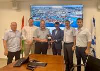 ראש העיר חיפה יונה יהב, ערך פגישת עבודה ראשונה עם נשיא חברת נמל חיפה, קפטן סומיט צ'אוהאן, במשרדו של צ'אוהאן בנמל חיפה.