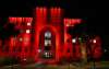 בניין עיריית חיפה הואר הערב (ראשון) באדום לציון יום המאבק הבינלאומי למניעת אלימות כלפי נשים. כתבה: רונית קיטאי. צילום: ראובן כהן